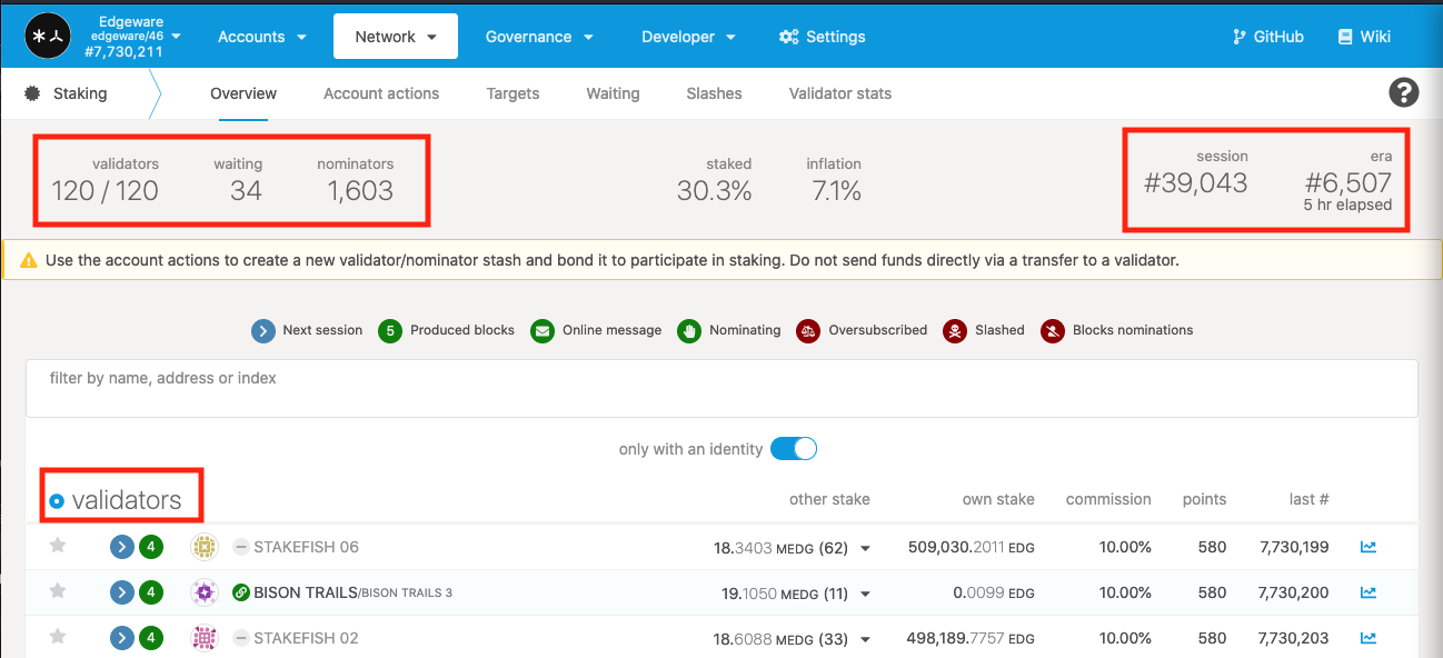 - 1,603 accounts that are nominating (people lending EDG to validators for staking purposes).